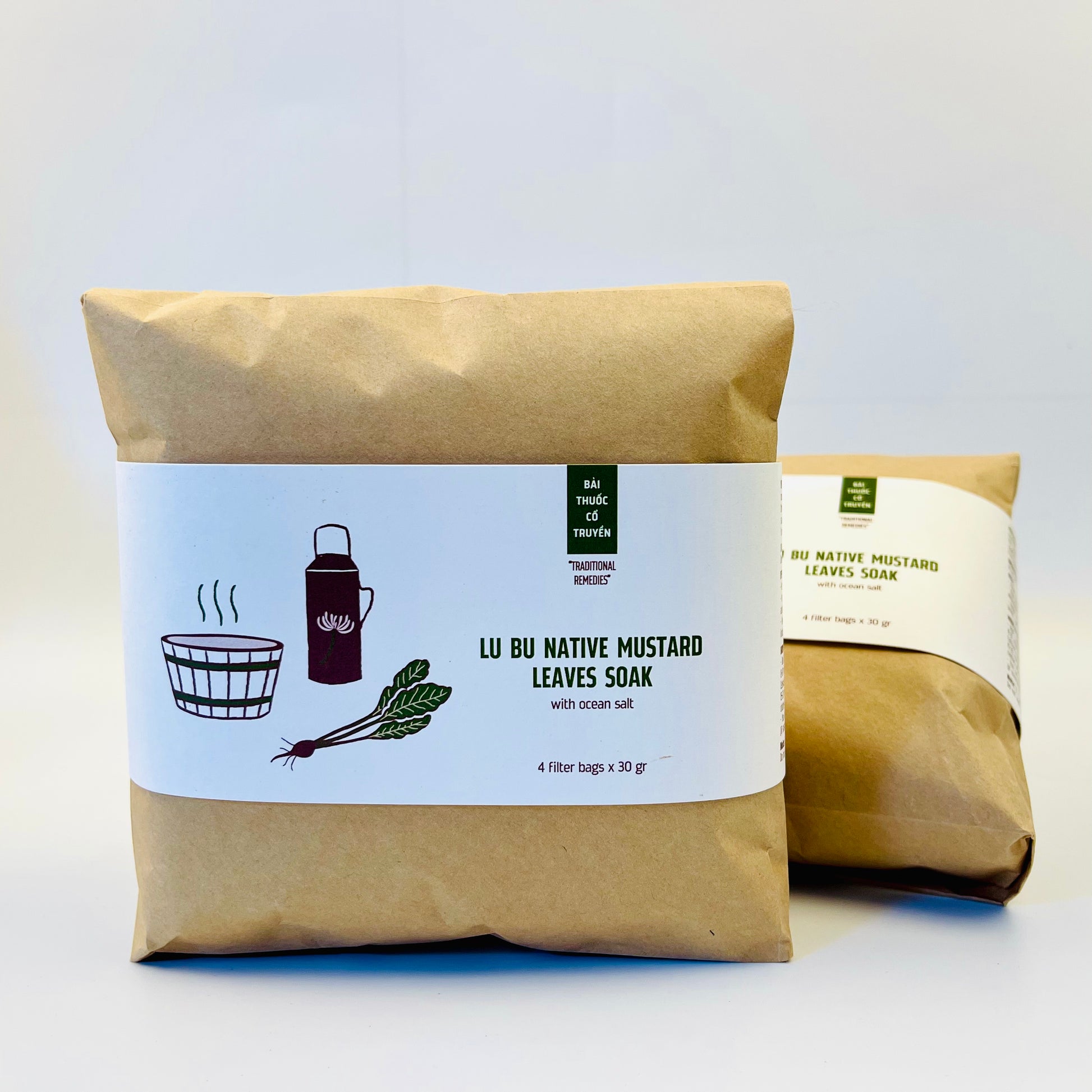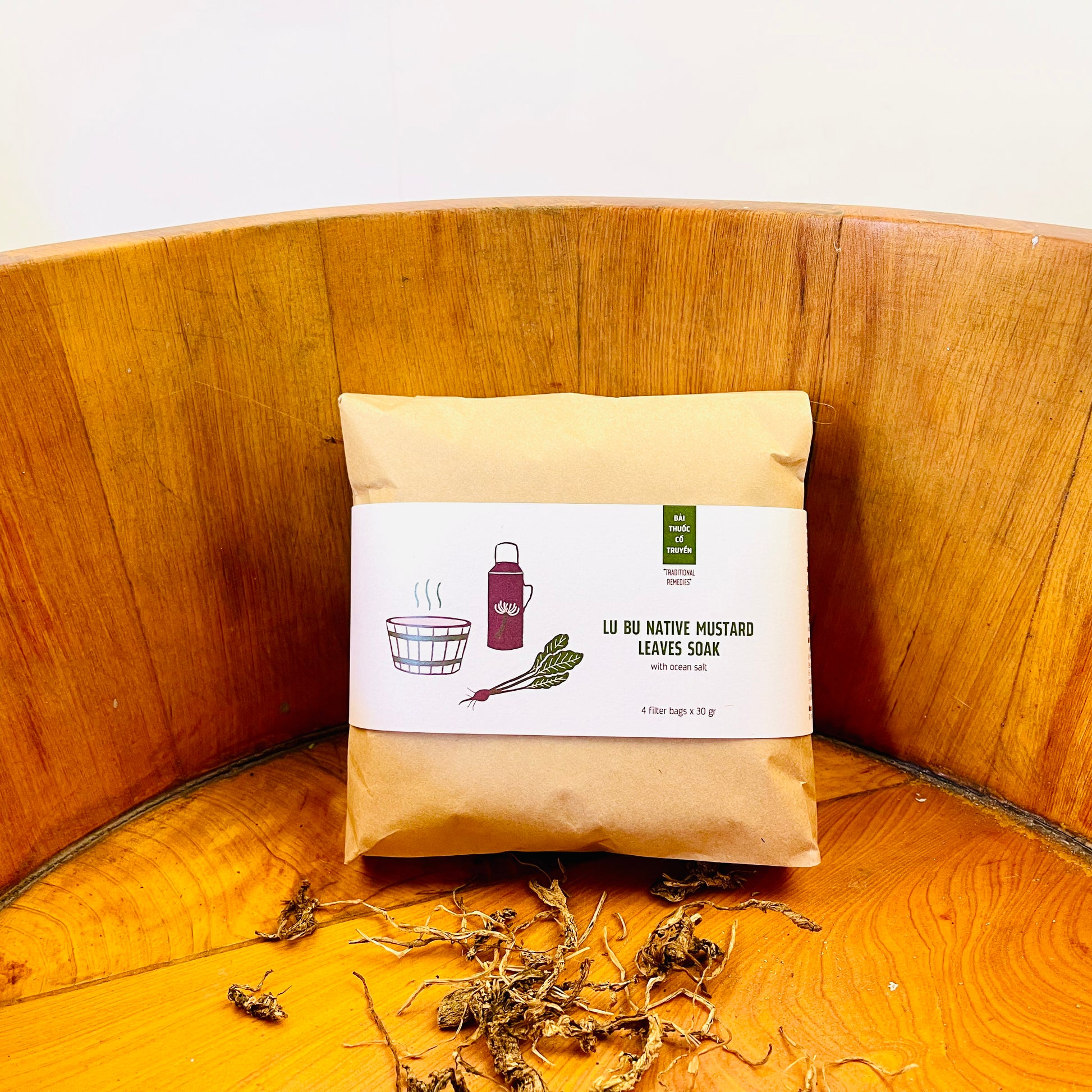 Description: This traditional remedy uses carefully dried native spicy mustard leaves to create a therapeutic soak. It combines Vietnamese hydrotherapy practices with the benefits of mustard leaves.